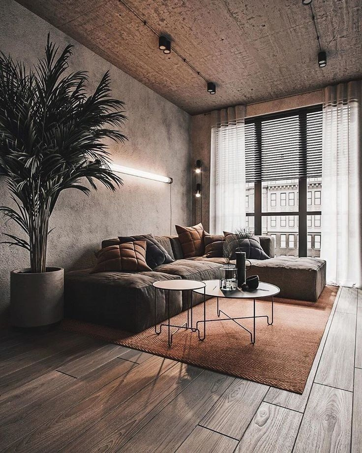 - Нейтральная палитра — белые, серые, чёрные оттенки с акцентами дерева, бетона или металла.